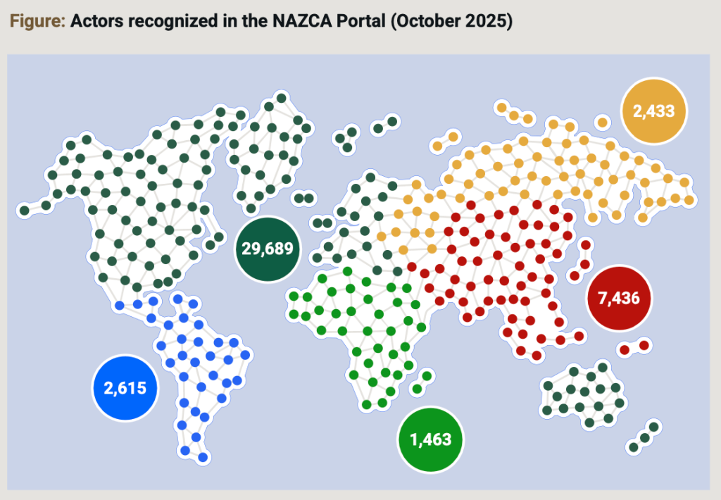 Aktör Katılımı: NAZCA Portalı, 2015 yılında 5.098 aktörle başladığı iklim eylemi takibini 2025 yılında 43.831 aktöre çıkararak büyük ölçüde genişletiyor. Bu artış, şehirlerden şirketlere, yatırımcılardan sivil toplum kuruluşlarına kadar çok çeşitli aktörlerin sürece katıldığını gösteriyor. 2025 itibarıyla portalda 20.832 şirket, 14.439 şehir, 1.808 yatırımcı ve 6.253 kuruluş iklim eylemine dair taahhütlerini kayıt altına almış durumda.