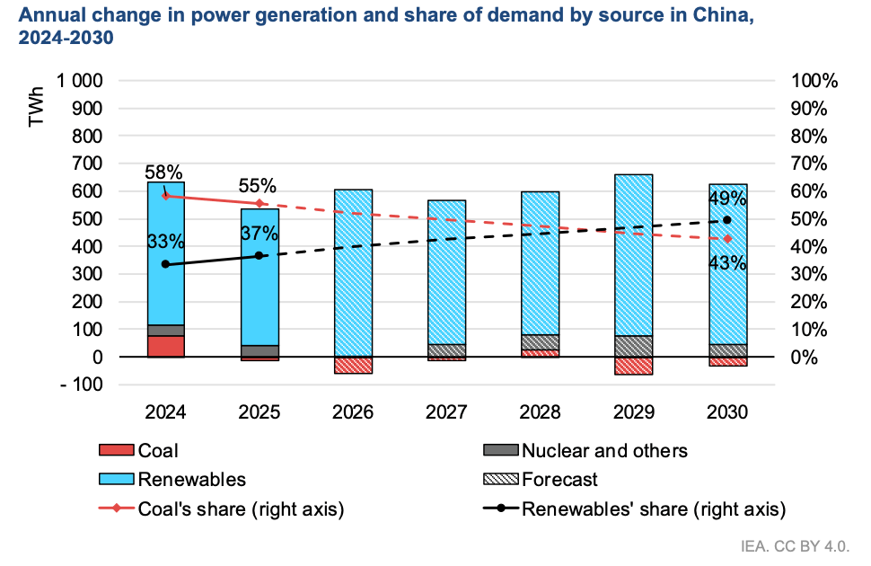 Çin’de kömür talebinin yataylaşması ve kademeli düşüşe yönelmesinin, ABD’deki geçici artışı küresel ölçekte dengelemesi raporun en çarpıcı bulgularından biri olarak yer ediyor. Çin’de kömür tüketimi 2025 yılında yaklaşık 4,95 milyar ton seviyesinde sabit kalırken, yenilenebilir enerji kapasitesindeki hızlı artış kömürün elektrik üretimindeki rolünü baz yükten esnek yedek kapasiteye doğru dönüştürüyor. 2030 itibarıyla Çin’de toplam kömür tüketiminin 4,77 milyar tona gerilemesi bekleniyor.
